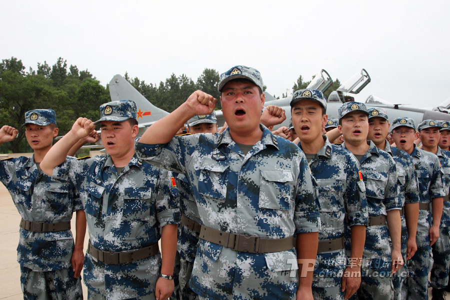 空軍戰(zhàn)斗群21名地轉(zhuǎn)人員出征前宣誓。 曹占禮 攝