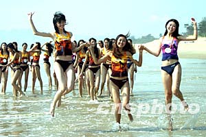 十月十三日,來自全國各地的數(shù)十名參加第九屆“模特之星”大賽的參賽模特,在廣東汕頭美麗的海灘上進(jìn)行排練,展示美麗身姿。 十月十四日晚,選手們在廣州汕頭花園賓館內(nèi)進(jìn)行首次個(gè)人才藝演練。