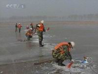 報(bào)道說,參加此次冰凌爆破演習(xí)的爆破隊(duì)員在黃河厚厚的冰上反應(yīng)迅速、技術(shù)運(yùn)用熟練。
