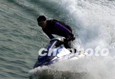香港最大型游艇展覽──“黃金海岸游艇展覽會2003”十一日舉行歡迎典禮,該展云集國際三十多款不同型號的游艇、快艇等吸引眾多觀眾。中新社傳真 潘索菲 攝