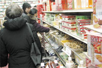 紐約東百老匯的中國(guó)城超市、香港超市也擠滿了買年貨的僑胞,其中以閩籍鄉(xiāng)親占多數(shù)。為吸引福州人,貨架上有多種從福建來的年貨。中國(guó)城超市一名員工說,年貨潮上個(gè)星期已經(jīng)開始了,福州鄉(xiāng)親好像怕遲買會(huì)賣光似的,都趕著一包兩包買回去,“中國(guó)人都要面子,過年不想失禮親朋的”。