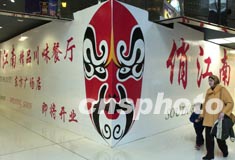 農(nóng)歷新年將至,北京東方新天地商業(yè)街上,一家即將開業(yè)的中餐館以京劇臉譜示人,希望給顧客留下深刻印象。作者:張煒