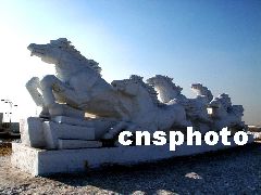 日前,兩座高7米,長20余米的大型雪雕奔馬圖在長春市世紀(jì)廣場(chǎng)落成。該奔馬圖由六匹英俊的奔馬組成,預(yù)示著順利送走馬年迎來羊年,為此吸引了眾多國內(nèi)外游客的視線。樊甲山 攝