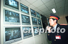 一月十七日,今年春運正式啟動。北京站工作人員正在監(jiān)控室通過數字化電視監(jiān)控系統(tǒng)密切注視站內情況,以保障春運安全有序。作者:張勤