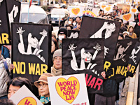 日本星期六掀起了全球周末反戰(zhàn)浪潮的第一波。五千多人星期六在首都東京集會﹐人數(shù)在日本全國當(dāng)天舉行的十來個(gè)抗議集會中最多。