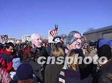 華盛頓是這波反戰(zhàn)潮流的焦點(diǎn)。據(jù)華盛頓警方報(bào)告,今天中午,至少有三萬(wàn)人頂著凜冽的寒風(fēng),參加了在市區(qū)東部舉行的集會(huì)和游行。