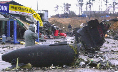 韓國電視臺(tái)援引目擊者的話說,飛機(jī)撞到地面爆炸,“成為一團(tuán)火球”,路邊的一家修車店被炸毀,附近的一座民宅起火。