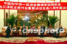 中國和平統(tǒng)一促進(jìn)會、黃埔軍校同學(xué)會27日在北京舉行座談會,紀(jì)念江澤民主席《為促進(jìn)祖國統(tǒng)一大業(yè)的完成而繼續(xù)奮斗》重要講話發(fā)表八周年。全國政協(xié)副主席羅豪才、黃埔軍校同學(xué)會副會長林上元、黎元等四十人出席。作者:毛建軍