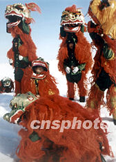 駐守新疆雪域高原的解放軍官兵在冰天雪地舞獅鬧春,春節(jié)喜慶的氣氛洋溢在邊關軍營。作者:馬林