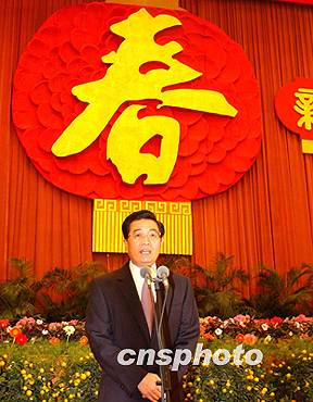 中共中央總書記胡錦濤主持團拜會。他代表中共中央、國務院,向全國各族人民,向廣大工人、農民、知識分子和干部,向人民解放軍指戰(zhàn)員、武警官兵和公安干警,向各民主黨派和全國工商聯、各人民團體和各界人士,表示節(jié)日的問候。他向香港特別行政區(qū)同胞、澳門特別行政區(qū)同胞、臺灣同胞、海外僑胞,致以良好的祝愿,并向關心和支持中國現代化建設的國際友人,表示衷心的感謝。他祝大家新春愉快,身體健康,闔家幸福!