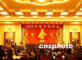 中新網北京1月31日電(記者 齊彬)中共中央、國務院今天上午在人民大會堂舉行二00三年春節(jié)團拜會,江澤民、胡錦濤、李鵬、朱镕基、李瑞環(huán)、李嵐清、吳邦國、溫家寶、賈慶林、曾慶紅、黃菊、吳官正、李長春、羅干等領導人同首都各界人士四千五百多人歡聚一堂,辭舊迎新,共慶中國人民的傳統節(jié)日。