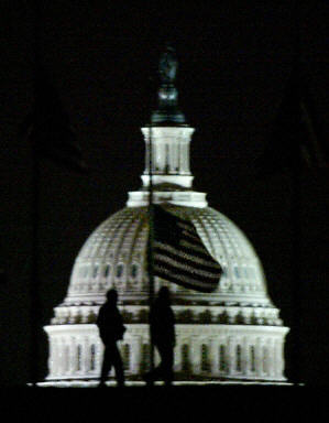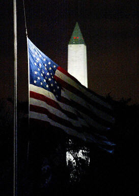 美國東部時(shí)間2月1日上午9:00(北京時(shí)間1日晚10:00),就在“哥倫比亞”號(hào)航天飛機(jī)即將返回佛羅里達(dá)州的肯尼迪航空中心前數(shù)分鐘,該飛船突然發(fā)生分裂解體現(xiàn)象,有碎片從飛船上落下。機(jī)上7名宇航員沒有生還的跡象。圖為:美國華盛頓降半旗紀(jì)念哥倫比亞號(hào)失事宇航員。
