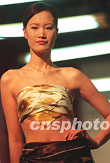 北京地壇春節(jié)文化廟會上突出《江南情思》的系列時裝,使廟會融入了更多的時尚內(nèi)容。作者:鄒憲