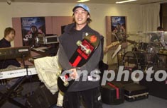 歌星陳奕迅2月5日在香港為即將舉行之個(gè)人演唱會(huì)進(jìn)行彩排,彩排期間亦將喜愛的滑板帶在身旁。鄧慶樂 攝