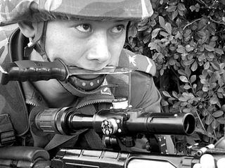 該支隊前沿指揮所得到情報后,立即派特種作戰(zhàn)分隊按預(yù)先的路線分二路縱隊向2號地區(qū)開進,協(xié)同公安機關(guān)封鎖現(xiàn)場,及時解救人質(zhì)、排除爆炸物品、偵毒、洗消現(xiàn)場、搶救傷員、抓獲“恐怖分子”。