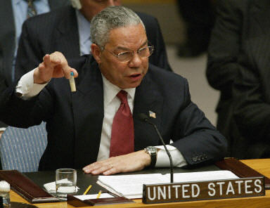 美國國務(wù)卿鮑威爾當?shù)貢r間5日上午10時35分向聯(lián)合國安理會成員就伊拉克問題進行了90分鐘長的情況通報,并以多媒體方式提交了有關(guān)伊拉克研制和隱瞞大規(guī)模殺傷性武器的大量證據(jù)。