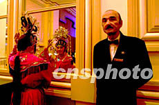 在美國芝加哥華人華僑春節(jié)聯(lián)歡會上,扮演楊貴妃的演員上場前整妝,與希爾頓酒店的洋服務(wù)生在羊年相遇,形成有趣的三“羊”相會。作者:王瑤
