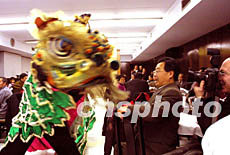 春節(jié)期間,美國芝加哥華人華僑相聚一堂,他們用傳統(tǒng)舞獅祝愿世界和平。作者:王瑤
