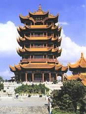 黃鶴樓原址湖北武昌蛇山黃鶴磯頭,始建于三國時期吳黃武二年(公元223年),傳說是為了軍事目的而建,亦有傳說指其原為辛氏開設(shè)的酒店。1957年建長江大橋武昌引橋時,占用黃鶴樓舊址,如今重建的黃鶴樓在距舊址約1千米左右的蛇山峰嶺上。其樓共五層,高50.4米,攢尖頂,層層飛檐,四望如一。在主樓周圍還建有勝象寶塔、碑廊、山門等建筑。整個建筑具有獨特的民族風(fēng)格。