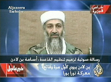 據(jù)報道,在11日晚間正常播放節(jié)目期間,半島電視臺的電視屏幕下方打著這樣一個標題:“‘基地’組織領導人奧薩馬·本·拉登號召所有穆斯林團結起來,共同保衛(wèi)伊拉克人民,半島電視臺將于稍晚時候播放一段錄音!