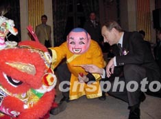 圖為德拉諾埃市長為瑞獅點睛。