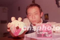 二月十三日夜,北京一名大學(xué)生正在酒吧里展示自己精心制作的情人節(jié)特別禮物--愛(ài)意光碟,碟中裝載著自己和心上人的照片、動(dòng)畫、視頻等內(nèi)容。如今中國(guó)的年輕人不再滿足于情人節(jié)送玫瑰、巧克力的傳統(tǒng)方式。作者:俞麗偉