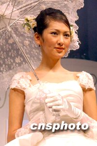 第三十屆情人節(jié)婚紗及結(jié)婚用品展,二月十五日在香港會(huì)展中心舉行。圖為香港名模展示婚紗。作者:錢興強(qiáng)