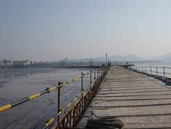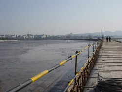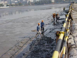據(jù)中廣網(wǎng)報(bào)道,圍堰兩邊是截然不同的風(fēng)景:一邊是碧波蕩漾,游船點(diǎn)點(diǎn)的秀麗西湖;一邊是湖底黑色的淤泥。中間圍堰有兩米多寬,全部用沙袋壘成,兩邊用鋼質(zhì)構(gòu)件固定,十分牢固。兩側(cè)水位的落差有三四米。抽干的湖底呈橢圓型,有幾臺小型水泵仍在工作,抽出從地下滲出的湖水。