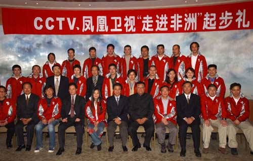 此次行動(dòng)由CCTV、鳳凰衛(wèi)視共同打造。雙方昨晚在北京釣魚臺(tái)芳菲苑舉行隆重的“起步禮”。外交部、國(guó)務(wù)院新聞辦、廣電總局、文化部等部門相關(guān)人士,以及非洲三十多個(gè)駐華使館的大使、文化參贊及各界約200余人到場(chǎng)為隊(duì)員們壯行。