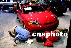 一年一度的美國芝加哥車展正在展覽中心舉行,數(shù)十家世界著名汽車制造商的一千多件展品登臺(tái)亮相,圖為本田汽車展臺(tái)前,參觀者和推銷員一起對(duì)最新問世的轎車上下打量,仔細(xì)研究。作者:王瑤