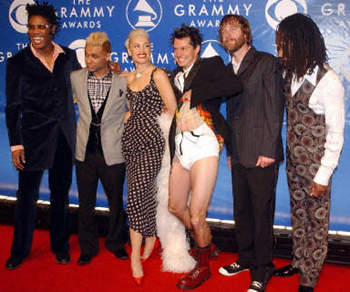 第45屆格萊美獎頒獎典禮在紐約麥迪遜廣場花園隆重揭幕,"NO DOUBT"樂隊獲得最佳流行音樂組合大獎。