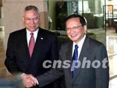 鮑威爾說,美中關(guān)系近一年多來取得很大進(jìn)展,雙方在高層對(duì)話、人員交往、反恐、經(jīng)貿(mào)等領(lǐng)域進(jìn)行了很好的合作。切尼副總統(tǒng)期待著不久訪問中國。美方希望進(jìn)一步加強(qiáng)與中國的合作關(guān)系,美方意識(shí)到臺(tái)灣問題對(duì)中國的重要性,美方將堅(jiān)持一個(gè)中國的政策,遵守美中三個(gè)聯(lián)合公報(bào),不支持任何搞“臺(tái)灣獨(dú)立”的活動(dòng)。
