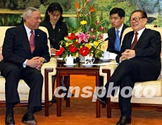 江澤民對(duì)再次與鮑威爾見面表示高興。