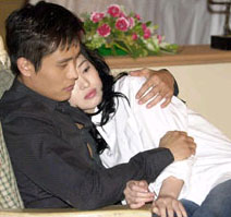 從26日凌晨5時(shí)起,兩人就開(kāi)始排練。宋慧喬坐在李炳憲的膝蓋上表白“我愛(ài)你”,但她因過(guò)分投入,竟流了眼淚,由于劇本上沒(méi)有這種要求,暫停拍攝。李炳憲就像影片《亂世佳人》中的克拉克·蓋博一樣,舉起宋慧喬,挪到床上去,讓攝制組感到滿意。李炳憲先在躺在床上的宋慧喬的前額接吻后,又熱烈地接吻宋慧喬的嘴唇,成功地表演了床上接吻戲。