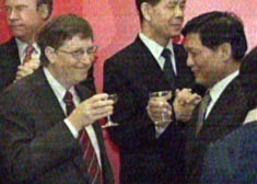二十七日,北京市科學(xué)技術(shù)委員會(huì)和北京信息化辦公室與微軟(中國)有限公司的簽署合作備忘錄儀式在北京舉行。北京市委書記劉淇(右)與比爾·蓋茨(左)出席簽字儀式。中新社圖