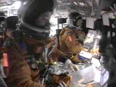人民日報駐美記者發(fā)回的消息稱,在影片中,人們可清晰看見“哥倫比亞”號的飛行控制臺和幾位表情非常輕松的宇航員,并能聽見他們正在互相交談。只見他們有的在觀察飛行儀表,有的在飲水,有的在整理手套,還有的在談?wù)摲岛綍r的“重力感覺”,有說有笑的宇航員甚至專門讓攝像機拍攝下了航天飛機窗外壯觀的太空景色,絲毫沒有感到死神正在悄悄逼近!