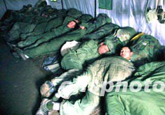 三月初,在新疆地震災(zāi)區(qū)參加救災(zāi)的解放軍連日只能在陰冷潮濕的帳篷里休息,過度勞累加上近日的雨雪降溫天氣使一些官兵患上感冒。作者:宋吉河