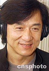 香港藝人成龍三月三日在香港為影片《千機變》主題曲錄音。錢興強 攝