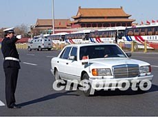 各國(guó)駐華使節(jié)三月三日應(yīng)邀列席全國(guó)政協(xié)十屆一次會(huì)議的開幕式,伊拉克駐中國(guó)大使的專車駛過天安門赴會(huì)。作者:賈國(guó)榮