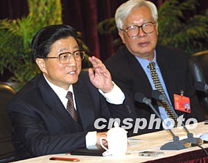 三月四日下午,中共中央政治局常委黃菊在北京看望出席全國政協(xié)十屆一次會議的科協(xié)、科技屆委員,并參加了聯(lián)組討論。作者:史利
