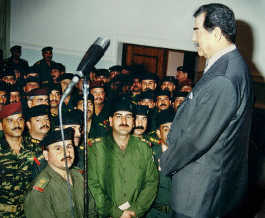 3月5日,伊拉克總統(tǒng)薩達姆在巴格達會見共和國衛(wèi)隊官員。