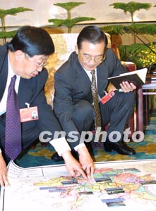 “你說的是從虎跳峽?還是從三江口?”溫家寶副總理一面打斷他的話,一面蹲在地上細(xì)心地尋找起代表所說的地方。