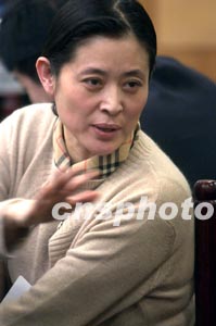全國政協(xié)委員、電視主持人倪萍在七日的分組討論會(huì)上呼吁關(guān)注農(nóng)村普教問題,對(duì)貧困山區(qū)發(fā)放“教育券”來保障教育資金的專款專用。作者:廖文靜