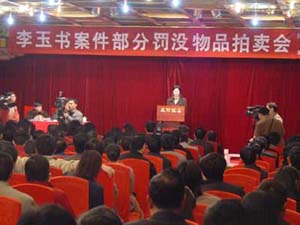 據悉,此次拍賣活動是四川省繼拍賣原四川省交通廳副廳長鄭道訪贓物后第二次拍賣貪官贓物。由成都市財政局,成都市人民檢察院主辦,由成都市東方拍賣公司拍賣,估價在三百萬左右,就金額而言,約占其非法所得的三分之一。這批贓物于六日起在成都飯店蜀樂宮向市民公開展示,除李玉書為其情人購置的兩套高檔住房、一套臨街商鋪和一輛白色富康轎車外,還有兩只瑞士原裝的勞力士手表、手提式電腦、派克鋼筆、空調、紅木沙發(fā)等物品。