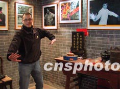 加拿大楓葉尋根之旅的華裔青年十日來到廣東順德杏壇右灘村尋根,營員鄭國棟在李小龍祖居擺姿勢(shì)留影。作者:羅仰明