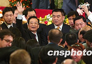 溫家寶發(fā)自肺腑的講話贏得記者們的熱烈掌聲。