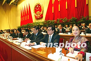十屆人大一次會(huì)議十八日上午在北京人民大會(huì)堂閉幕,圖為刀美蘭、于均波、習(xí)近平(從右至左)等代表們按表決器通過(guò)各項(xiàng)決議。作者:毛建軍