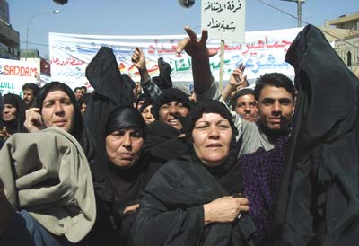 在戰(zhàn)爭中死去親人們的母親們也上街支持薩達姆。(春風)