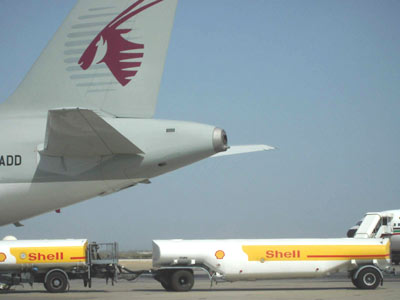 西方石油公司在中東地區(qū)已經(jīng)三分市場,圖為美國石油公司為海灣航空飛機加油。(春風)