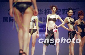 一名模特二十日在上海國(guó)際服裝節(jié)的“中華杯”內(nèi)衣/沙灘裝設(shè)計(jì)決賽表演。作者:劉殊瑾